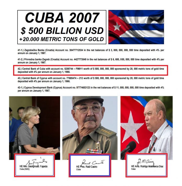 Η ΚΟΥΒΑ ΣΤΙΣ ΓΚΡΙΖΕΣ ΟΘΟΝΕΣ ΤΗΣ ΚΕΝΤΡΙΚΗΣ ΤΗΣ ΤΡΑΠΕΖΑΣ ΕΧΕΙ ΑΠΟ ΤΟ 1966 ΚΑΙ ΤΟΚΙΖΟΝΤΑΙ ΜΕ 4% ΤΟ ΧΡΟΝΟ 500 ΔΙΣΕΚΑΤΟΜΜΥΡΙΑ ΔΟΛΛΑΡΙΑ Η.Π.Α. USD $$ ΚΑΙ 20.000 ΜΕΤΡΙΚΟΥΣ ΤΟΝΟΥΣ ΧΡΥΣΟΥ ΟΣΑ ΑΚΡΙΒΩΣ ΚΑΙ Η ΚΕΝΤΡΙΚΗ ΤΡΑΠΕΖΑ ΤΗΣ ΕΛΛΑΔΑΣ ΟΠΩΣ (ΣΥΜΦΩΝΑ ΜΕ ΤΟ ΕΠΙΣΗΜΟ ΕΓΓΡΑΦΟ ΤΟΥ Ο.Η.Ε. ΠΟΥ ΕΒΓΑΛΕ ΣΤΗ ΦΟΡΑ Ο ΕΛΛΗΝΑΣ ΑΡΤΕΜΗΣ ΣΩΡΡΑΣ) ΚΑΙ ΟΙ ΠΕΡΙΣΣΟΤΕΡΕΣ ΚΕΝΤΡΙΚΕΣ ΤΡΑΠΕΖΕΣ ΤΩΝ ΚΡΑΤΩΝ-ΕΤΑΙΡΕΙΩΝ.